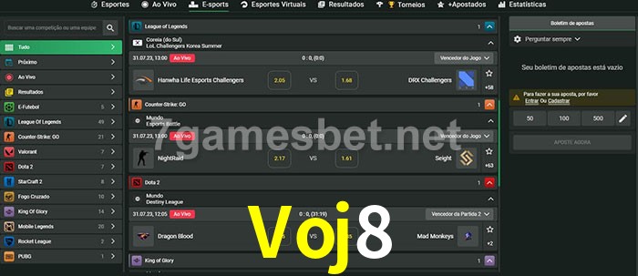 O Voj8 oferece uma grande seleção de opções de apostas em e-sports com probabilidades competitivas